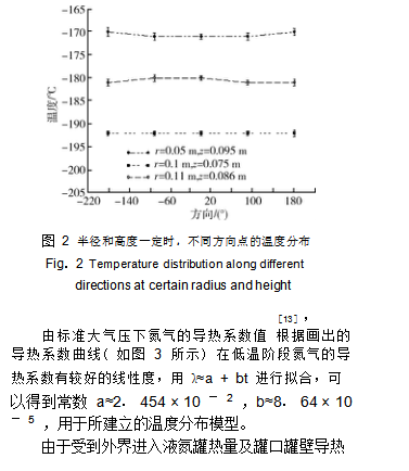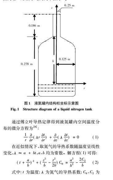 正確性,選擇常用的 10 L 的液氮罐( 內徑 0. 115 m) ,往罐內注入約 4—5 L 液氮,靜態放置 2 天,待液氮罐系統徹底穩定后,實測液氮罐內上部空間( 約 0. 12 m