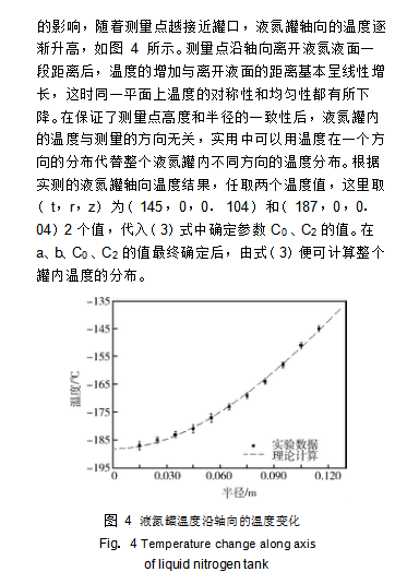 時,可保證罐內空間溫度在 - 130 ℃ ** - 190 ℃ 之間,低于 - 130 ℃ 的時間持續近 25 天。通過控制距離液氮面的高度,合理選擇保存樣品的溫度范圍,樣品的升降溫速度、保溫時間等因素,為各種實際應用提供便利條件。建立的罐內空間溫度模型給出了與實際測量吻合較好的罐內溫度分布,確定方程參數后,可便捷地分析罐內溫度的分布,證實這模型的合理性和