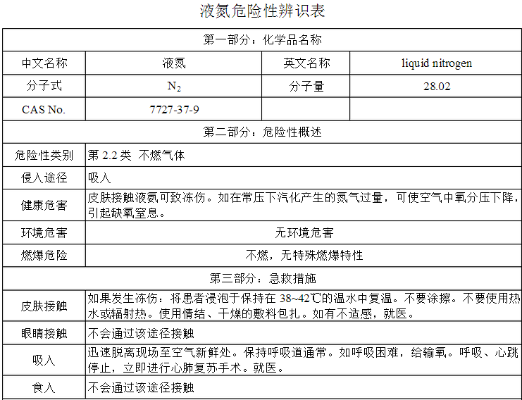 液氮MSDS介紹