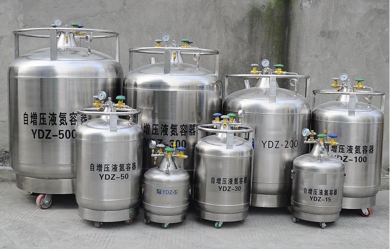 自增壓式液氮容器由優質不銹鋼制造,利用容器內部增壓系統使少量的液氮汽化產生壓力,將容器內部儲存的液氮排出。自增壓式液氮容器有控制結構和罐體組成,控制類構件主要有進(排)液閥、放空閥、增壓閥、安全閥、液位計、壓力表、腳輪。主要用于運輸和儲存液氮,也可以作為其他制冷裝置的冷源,目前廣泛的應用于模具行業、畜牧業、醫藥、半導體、食品、航空航天、軍事和低溫化工等行業和*域。
